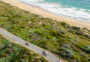 Rotto is usually bike territory, but the Wadjemup Bidi trail offers a very different way to experience the island. The 45km walking track is made up of five sections weaving through coastal scenery and culturally significant sites, with the short stretch between The Basin and Pinky Beach a favourite for those after something easy and stunning. Turquoise bays, wildflowers and the chance to spot quokkas at every turn.
