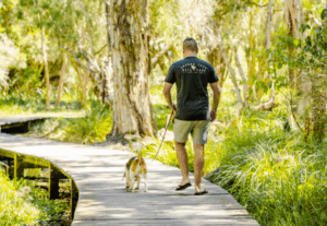 A historic trail linking small towns and bushland – dogs are welcome on lead and there are plenty of rest spots along the way.